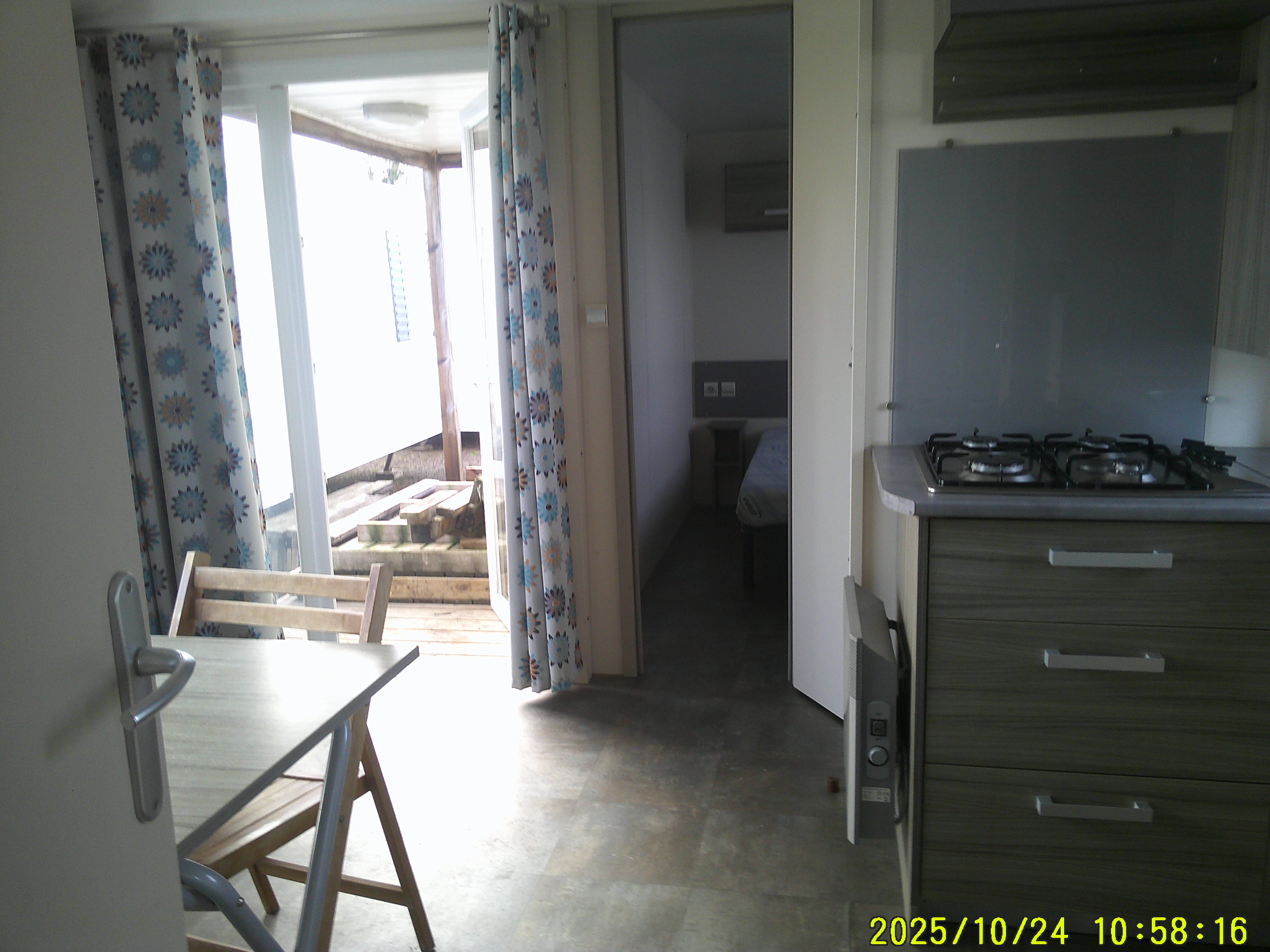 Mobil-home IRM Loggia de 2013, avec terrasse intégrée, mesure 8 m sur 4 m et offre un confort 4 saisons grâce à son convecteur . Il dispose d’un séjour très lumineux aménagé avec table et chaises, ainsi que d’une cuisine équipée de quatre feux gaz et d’un grand réfrigérateur-congélateur. La salle de bain comprend une douche et un lavabo, et les WC sont séparés pour davantage de praticité. Côté nuit, il propose une chambre parentale et une chambre enfant offrant 2 lits jumeaux, idéale pour accueillir toute la famille. Ce modèle combine luminosité, fonctionnalité et confort pour des séjours agréables en toute période de l’année.