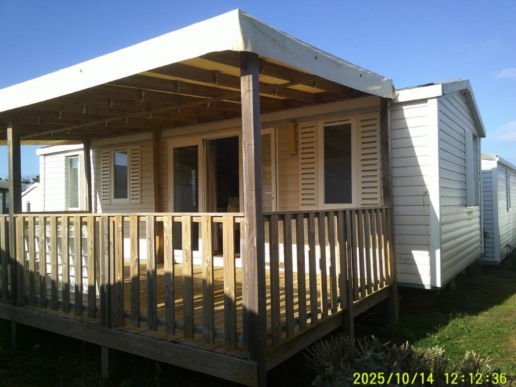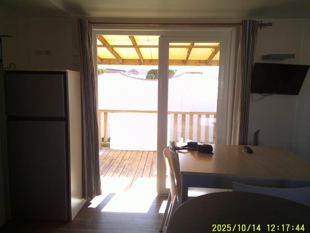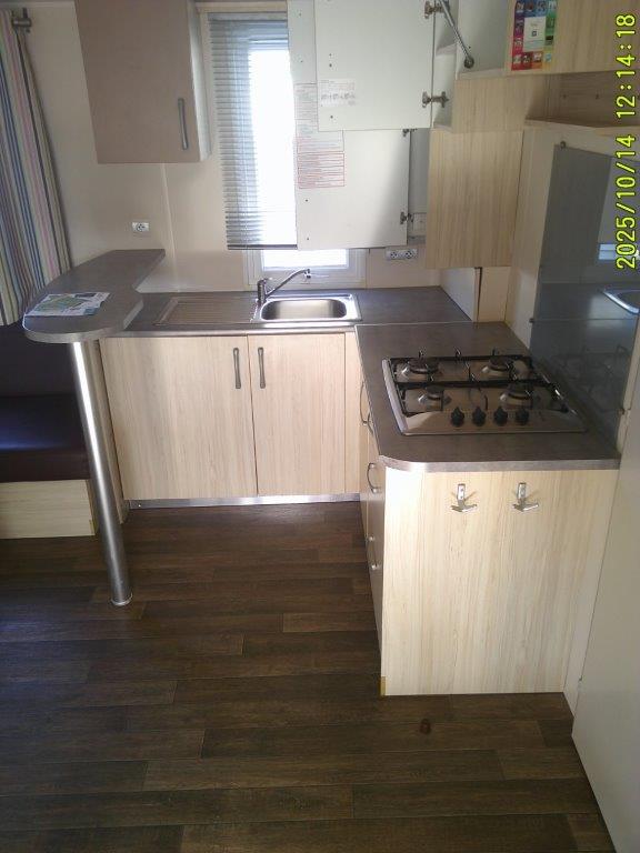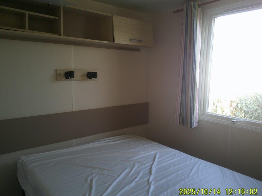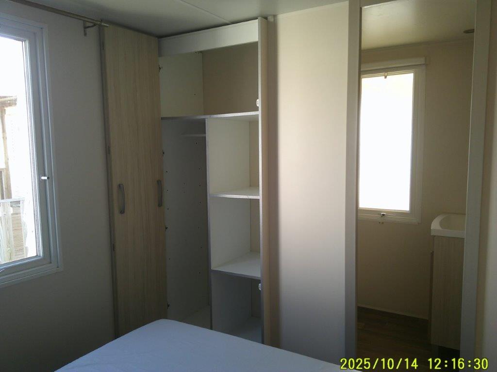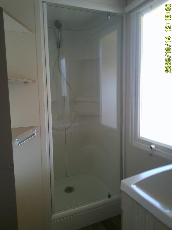 Ce mobile-home 4 Saisons, équipé de double vitrage, offre un confort optimal en toute période de l’année. L’espace de vie s’articule autour d’un salon central très lumineux grâce à une grande baie vitrée, aménagé avec une table et 4 chaises. Chaque pièce bénéficie d’un convecteur, garantissant une température agréable en toutes saisons.