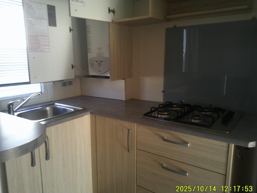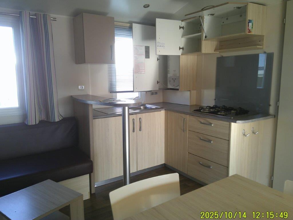 La cuisine, pratique et fonctionnelle, est dotée de 4 feux gaz ainsi que d’un grand frigo-congélateur, idéal pour les séjours prolongés.