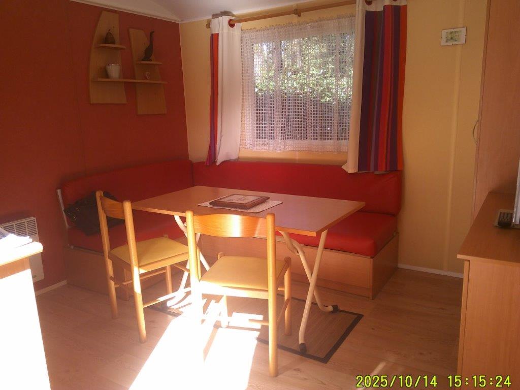 Ce mobil-home 4 saisons offre un espace de vie agréable et fonctionnel, pensé pour le confort en toute période de l’année.