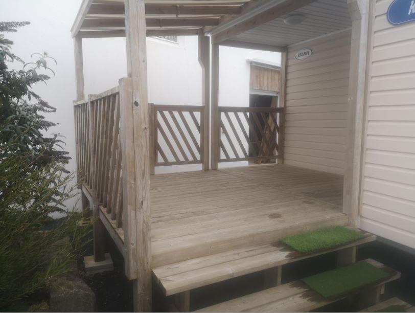 Ce mobil-home 4 saisons offre un confort optimal tout au long de l’année. Il dispose d’une terrasse extérieure intégrée située sur le côté gauche, idéale pour profiter pleinement de l’extérieur en toute convivialité.