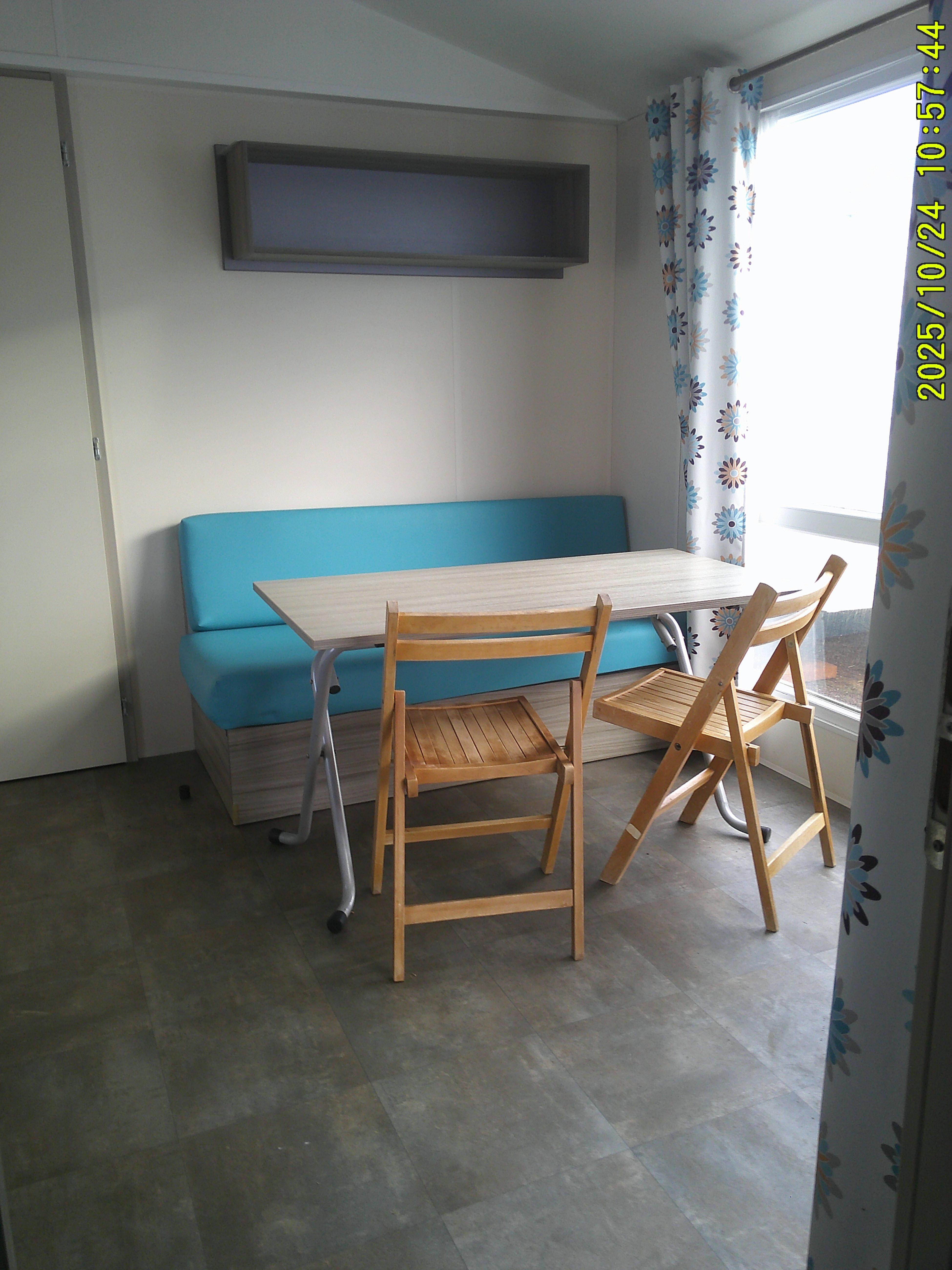 Mobil-home IRM Loggia de 2013, avec terrasse intégrée, mesure 8 m sur 4 m et offre un confort 4 saisons grâce à son convecteur . Il dispose d’un séjour très lumineux aménagé avec table et chaises, ainsi que d’une cuisine équipée de quatre feux gaz et d’un grand réfrigérateur-congélateur. La salle de bain comprend une douche et un lavabo, et les WC sont séparés pour davantage de praticité. Côté nuit, il propose une chambre parentale et une chambre enfant offrant 2 lits jumeaux, idéale pour accueillir toute la famille. Ce modèle combine luminosité, fonctionnalité et confort pour des séjours agréables en toute période de l’année.